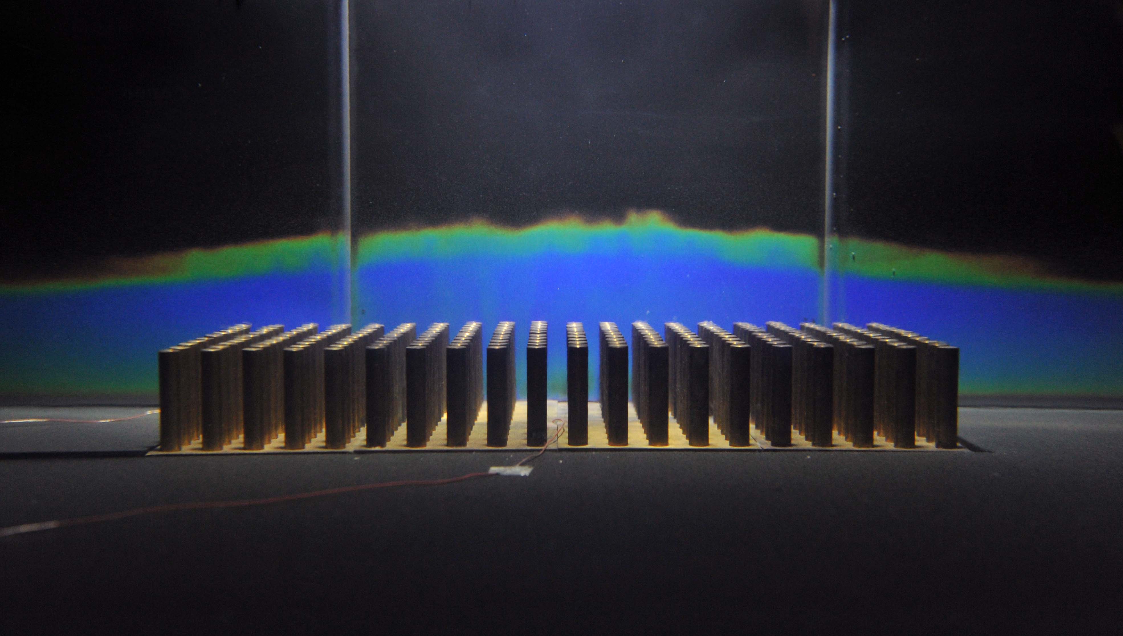 Professor Li Yuguo, Head of HKU Department of Mechanical Engineering, has carried out studies using water tank modelling of an ideal urban dome to identify the physics of wind.