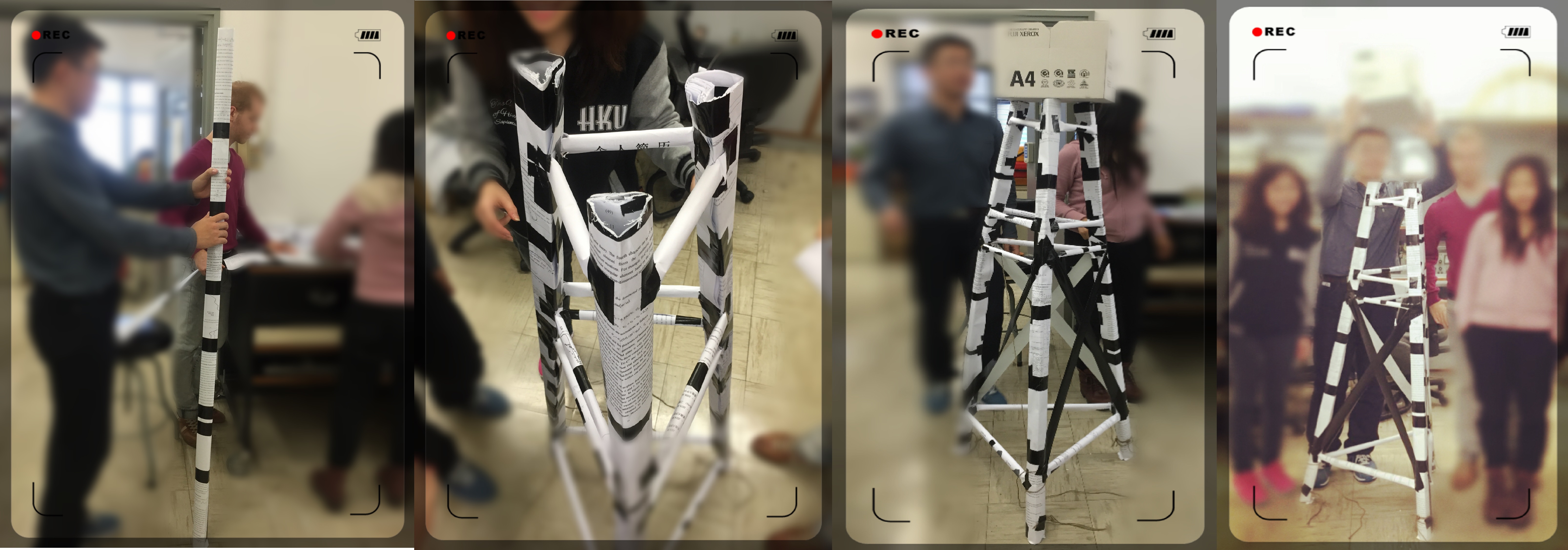 Each team, consists of four students, will be given two rolls of adhesive tape and 200 pieces of A4 recycle papers to build a paper tower of 1.5 to 1.7 meters in height. The work will be subjected to a loading test, and assessed according to criteria including aesthetic and innovation.