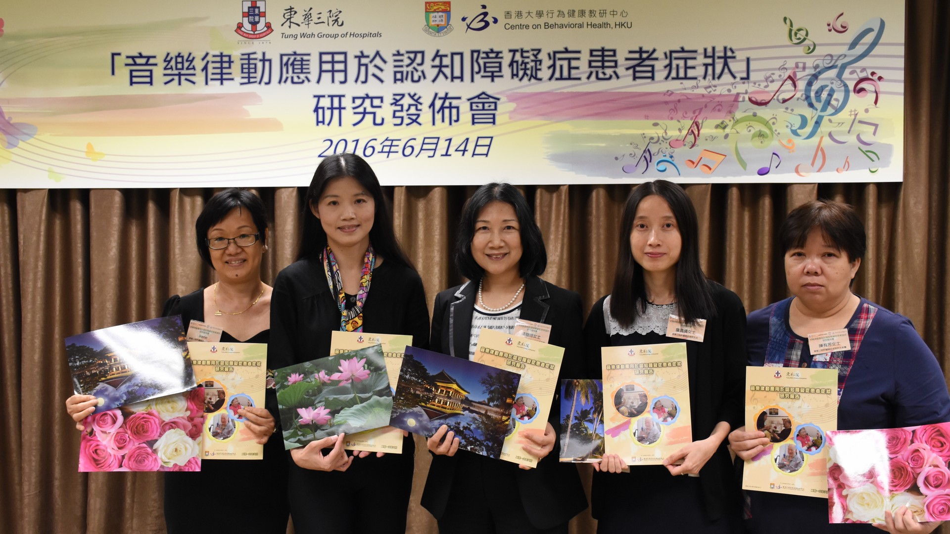 The Elderly Services Section of Tung Wah Group of Hospitals (TWGHs) invited the Centre on Behavioral Health (CBH) of the University of Hong Kong to conduct a study from October 2014 to September 2015 on music and movement intervention on elders with dementia and its effectiveness in improving their behavioral and psychological symptoms. The project was supported by the Social Welfare Department’s Social Welfare Development Fund (Phase 2). The organising committee held a press conference at the centre today (June 14) to introduce the project and disseminate research findings.