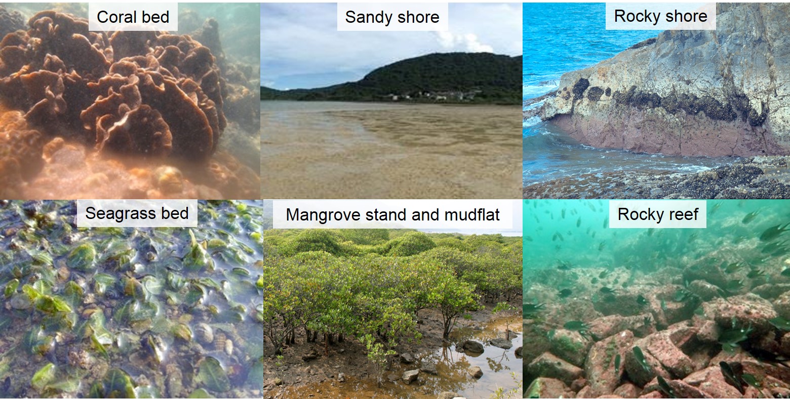 Figure 4 Snapshots of the diverse marine ecological habitats in Hong Kong (Photo credits: Prof Gray Williams, Dr Calton Law and Dr Cynthia Yau)