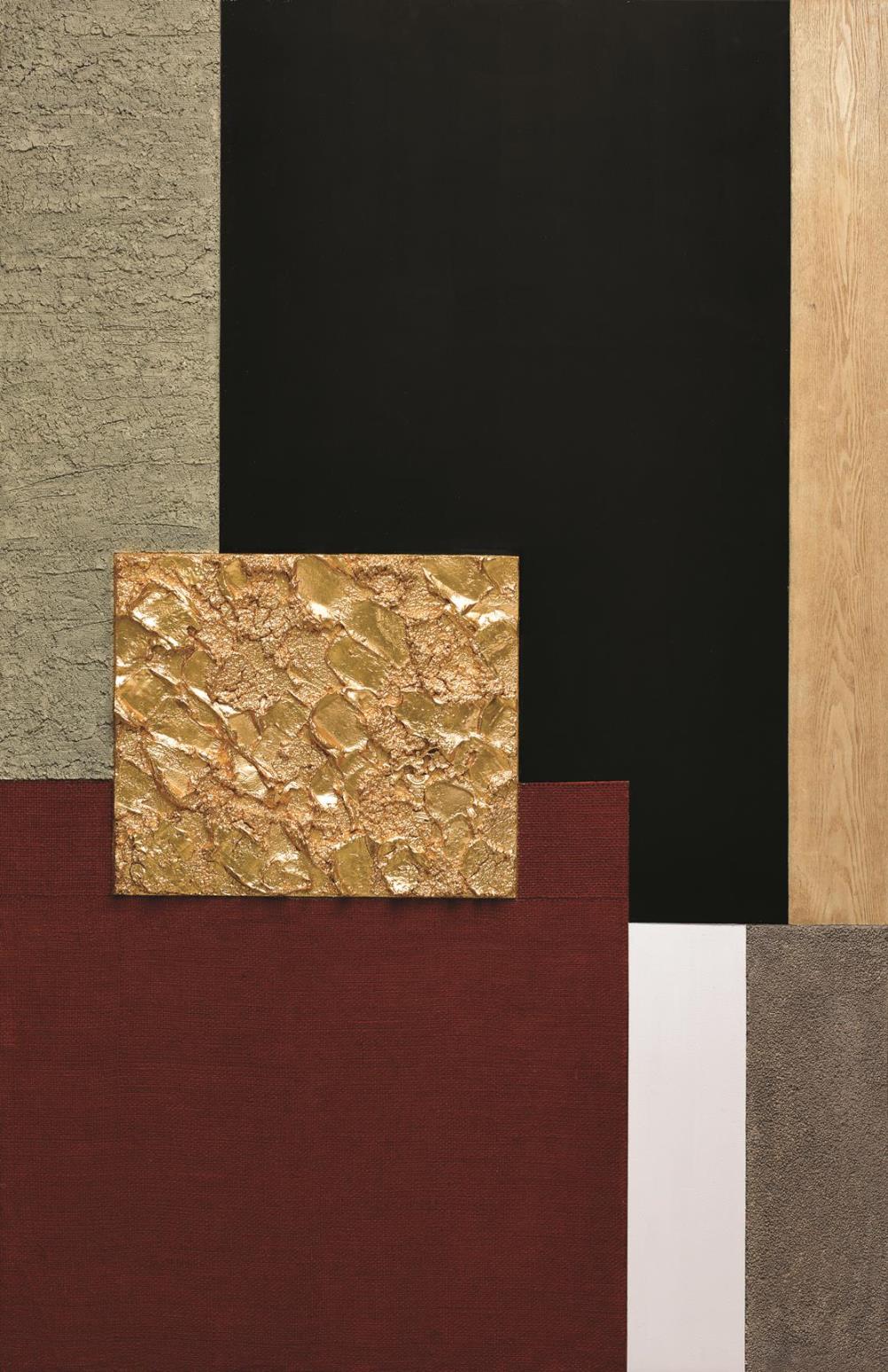 Mixed media on wood (gypsum, emulsion, marble glitter, oil and