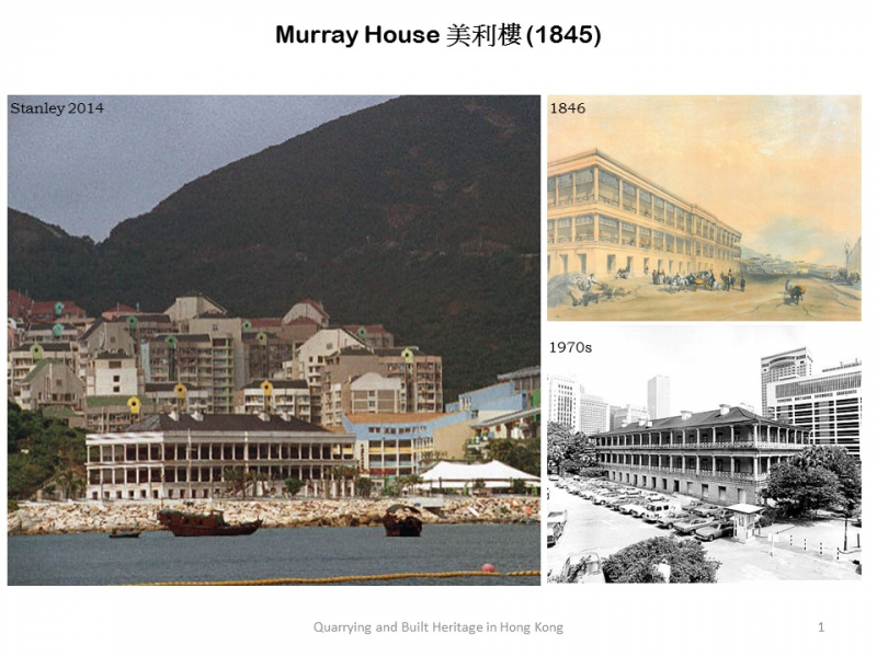 Murray House in different periods (Source of painting: 1846, painted by Murdoch Bruce, Historical Pictures, Collection of the Hong Kong Museum of Art)