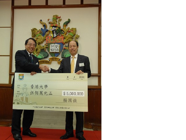 The University of Hong Kong (HKU) launched the "First-in-the-Family Education Fund" (FIFE Fund) and announced a generous donation of HK$1M per year for five years from Mr Yeung Kwok Keung, Chairman of Country Garden Holdings Ltd at a press conference today.