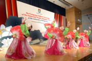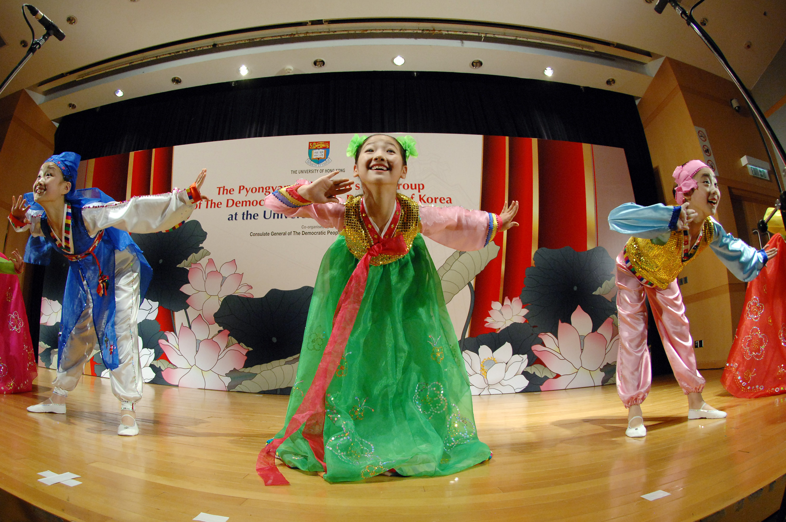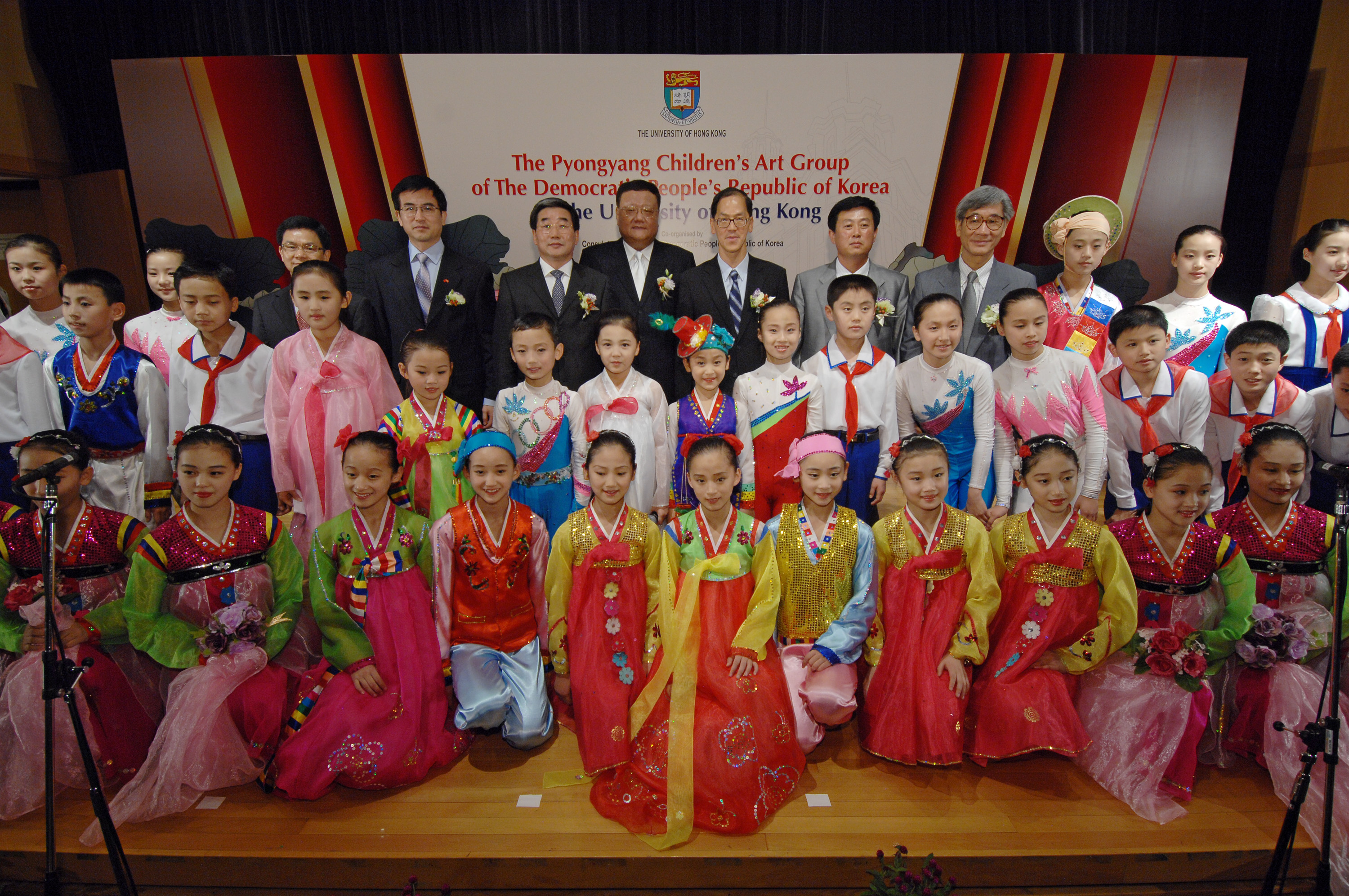 On its first visit to Hong Kong, the popular Pyongyang Children's Art Group of the Democratic People's Republic of Korea (the Art Group) gave their premiere performance at The University of Hong Kong (HKU) Rayson Huang Theatre today (14 July 2008). The Art Group of 40-member aged between 7 and 15 presented 12 songs, dances and instrument playing filled with traditional elements for students and prominent guests including Mr. Kim Ik Song (Consul General of the Democratic People's Republic of Korea), Mr. Yang Zigang (Deputy Commissioner, Office of the Ministry of Foreign Affairs of PRC in the HKSAR) and Mr. Tsang Tak-shing, JP (Secretary for Home Affairs, HKSAR). HKU Pro-Vice-Chancellor Professor SP Chow gave a note of welcome to all, followed by speeches made by Mr. Ri Yong Hwan (Secretary, the Central Committee of Kim Il Sung Socialist Youth League) and Mr. Liu Chang Le, JP (Chairman and CEO of Phoenix Satellite Television Holdings Ltd).