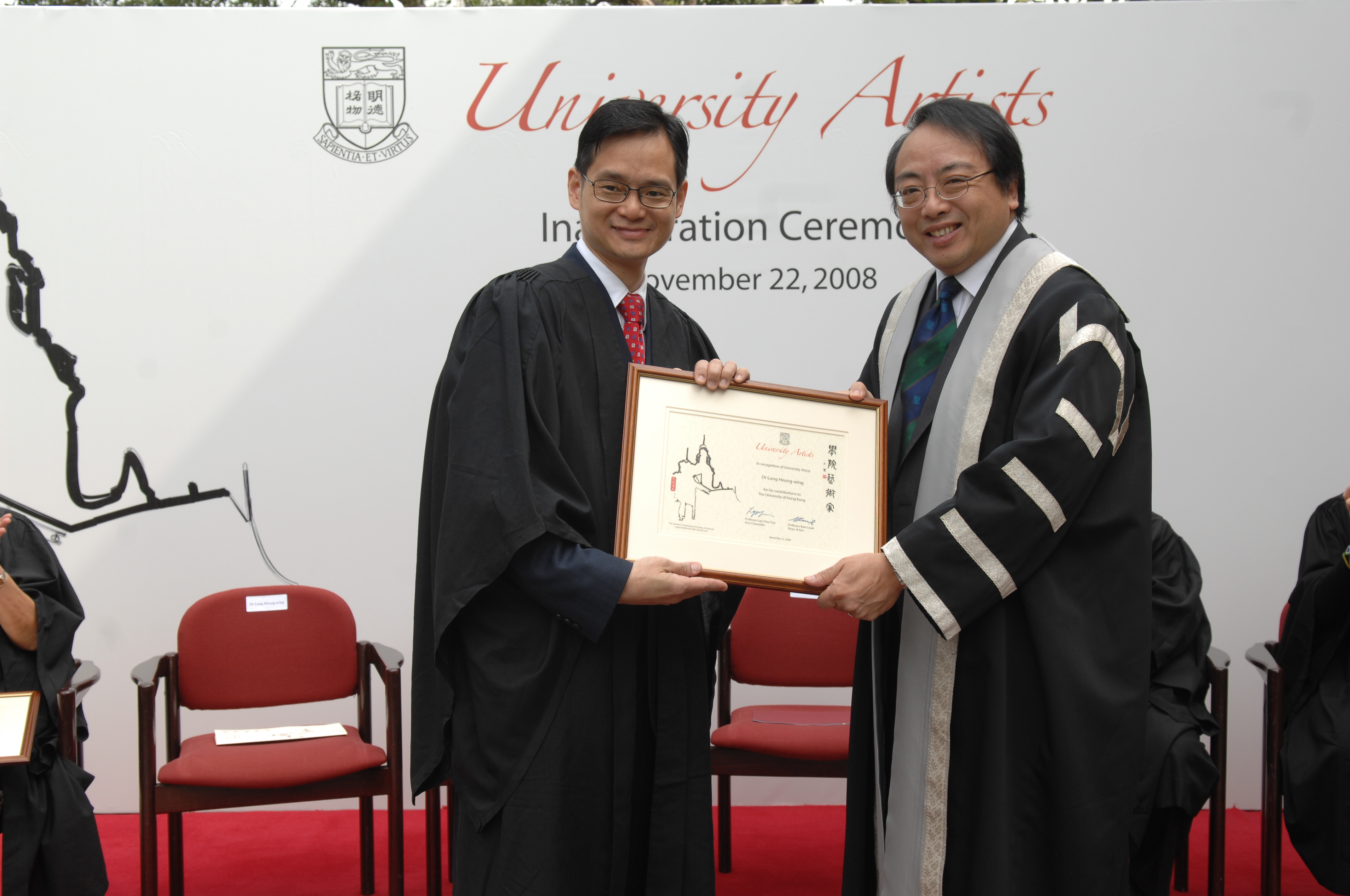 HKU Vice Chancellor Professor Lap-Chee Tsui said in the ceremony, "university students shall be equipped with a wide range of skills, including the ability to think independently and creatively, to communicate confidently, and to have a sense of responsibility to the community. The reflective and historical nature of the disciplines of the Arts Faculty is very important in helping to develop our students' critical, independent and innovative thinking." He thanked Wah Ching Fund for it support as he said, "Dr. Tam has been a friend of HKU for many years, who gave generous support to HKU for the research and development in education, arts and medicine. Through his Wah Ching Fund, the University Artist Scheme was established to take the development of humanities to a new height."