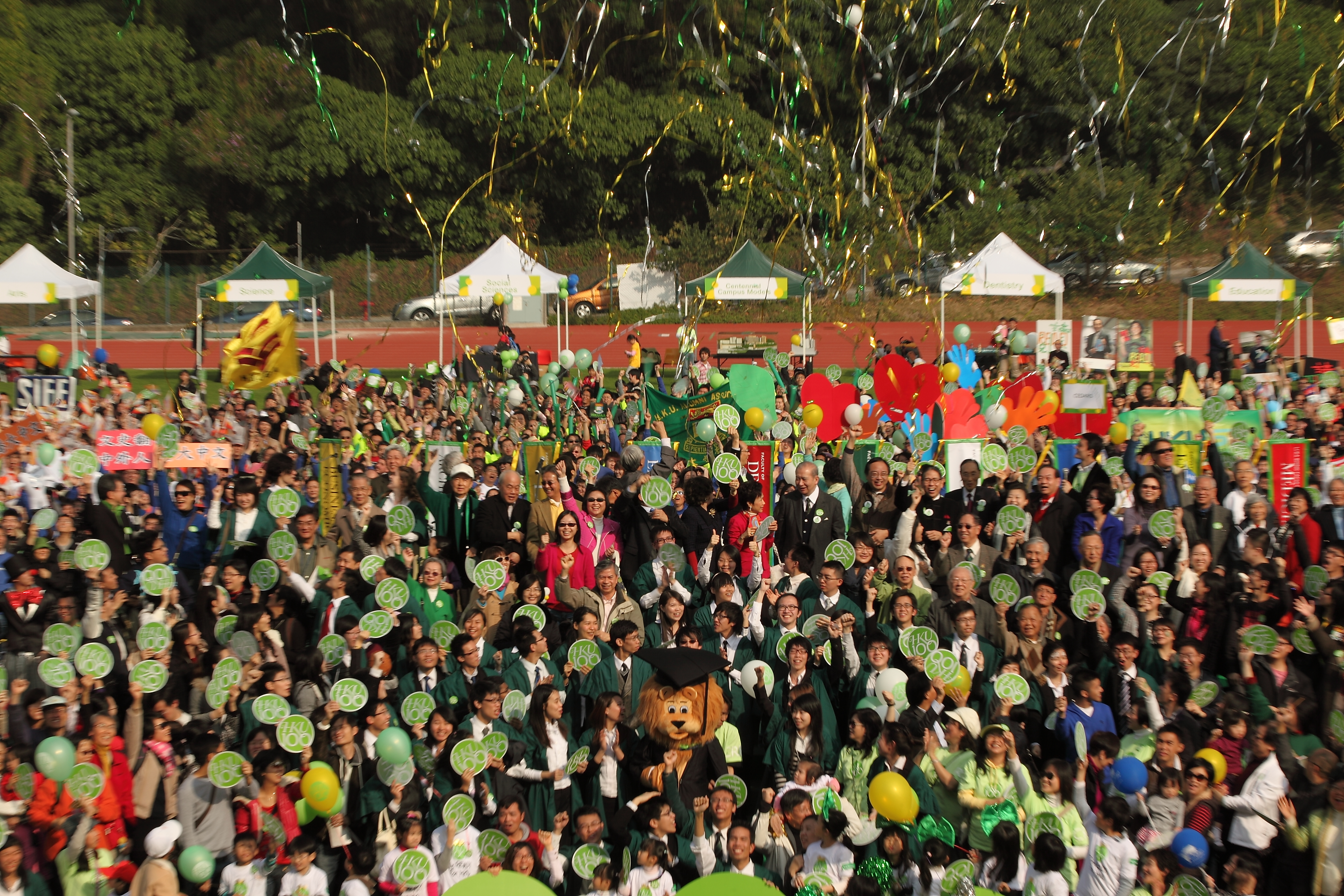 The University of Hong Kong officially launched its Centenary Celebrations today (January 9) in the HKU 100 Kick-Off Ceremony. Over 4,000 students, staff, alumni together with their families, residents from the neighbourhood and community centres joined the kick-off ceremony, parade and carnival in the Stanley Ho Sports Centre.