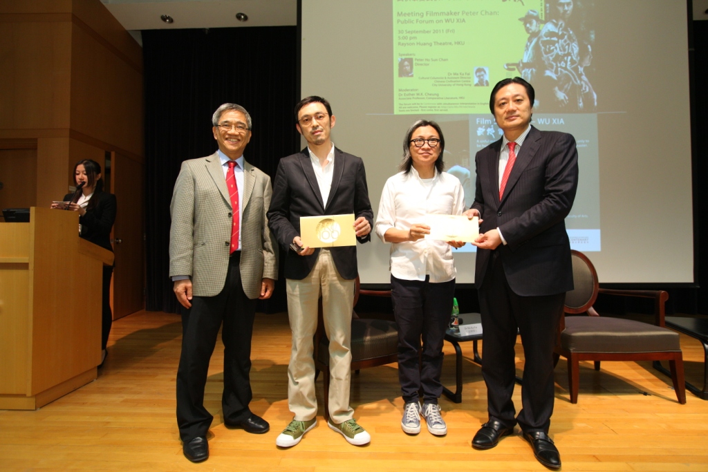 Filmmaker Mr Peter Ho Sun Chan discussed his latest film WU XIA with cultural columnist Dr Ma Ka Fai at a forum held today (September 30) at the University of Hong Kong (HKU). The forum, held as part of the University Artists Scheme, was an opportunity for members of the HKU community as well as the general public to engage with one of Hong Kong's most acclaimed directors. It was moderated by Dr Esther M. K. Cheung of the Department of Comparative Literature.