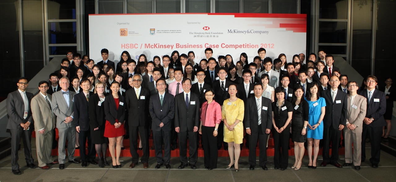 The HSBC/McKinsey Business Case Competition 2012 is organised by The University of Hong Kong (HKU) Asia Case Research Centre (ACRC) and sponsored by the Hongkong Bank Foundation and McKinsey and Company. The final was successfully held on 7 June 2012 at The University of Hong Kong. This year's competition was very intense with participation not only from the eight local universities but also eight top universities from Asia. Winners were announced at the award presentation ceremony in the evening.