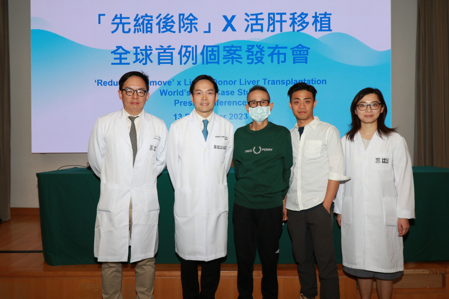 A new treatment strategy for locally advanced liver cancer, known as ‘Reduce and Remove’, was announced by the Department of Surgery and Department of Clinical Oncology, Centre of Cancer Medicine, School of Clinical Medicine, LKS Faculty of Medicine of the University of Hong Kong (HKUMed) earlier this year. This innovative approach provides a way for patients with inoperable locally advanced liver cancer to be cured. One remarkable case among patients treated with the ‘Reduce and Remove’ strategy involved the conversion of stage 4 liver cancer to stage 1 cancer, followed by the removal of the tumour through living donor liver transplantation. This novel treatment was also used for a second patient of advanced age who subsequently underwent this liver-preserving surgery. The liver transplantation case was presented at the Congress of the Asian Society of Transplantation 2023 and was recently published in Liver Cancer [Link to the publication].